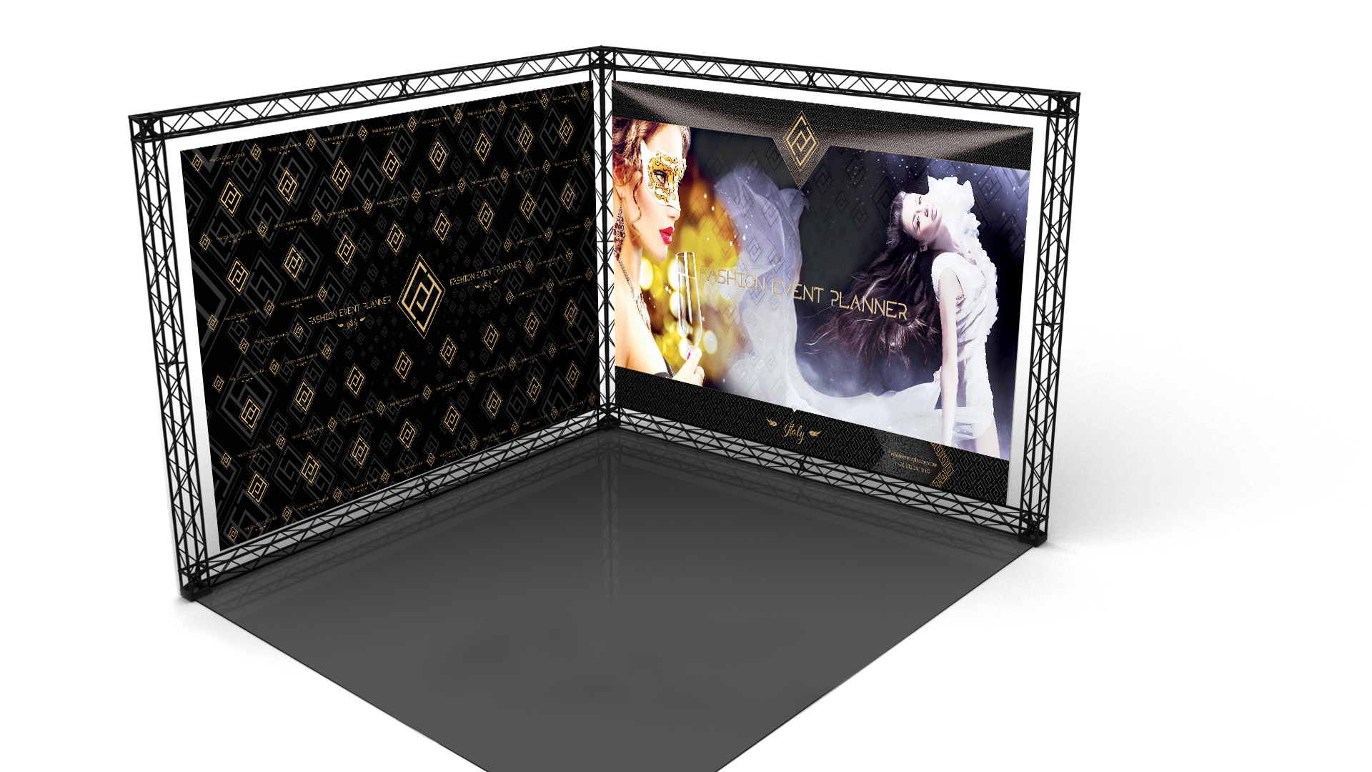 Possibilità di utilizzare una sola serie di grafiche sul perimetro interno se si confina con altri stand, oppure di applicarne due, in caso di comunicazione su entrambi i lati (stand tipo “isola”).