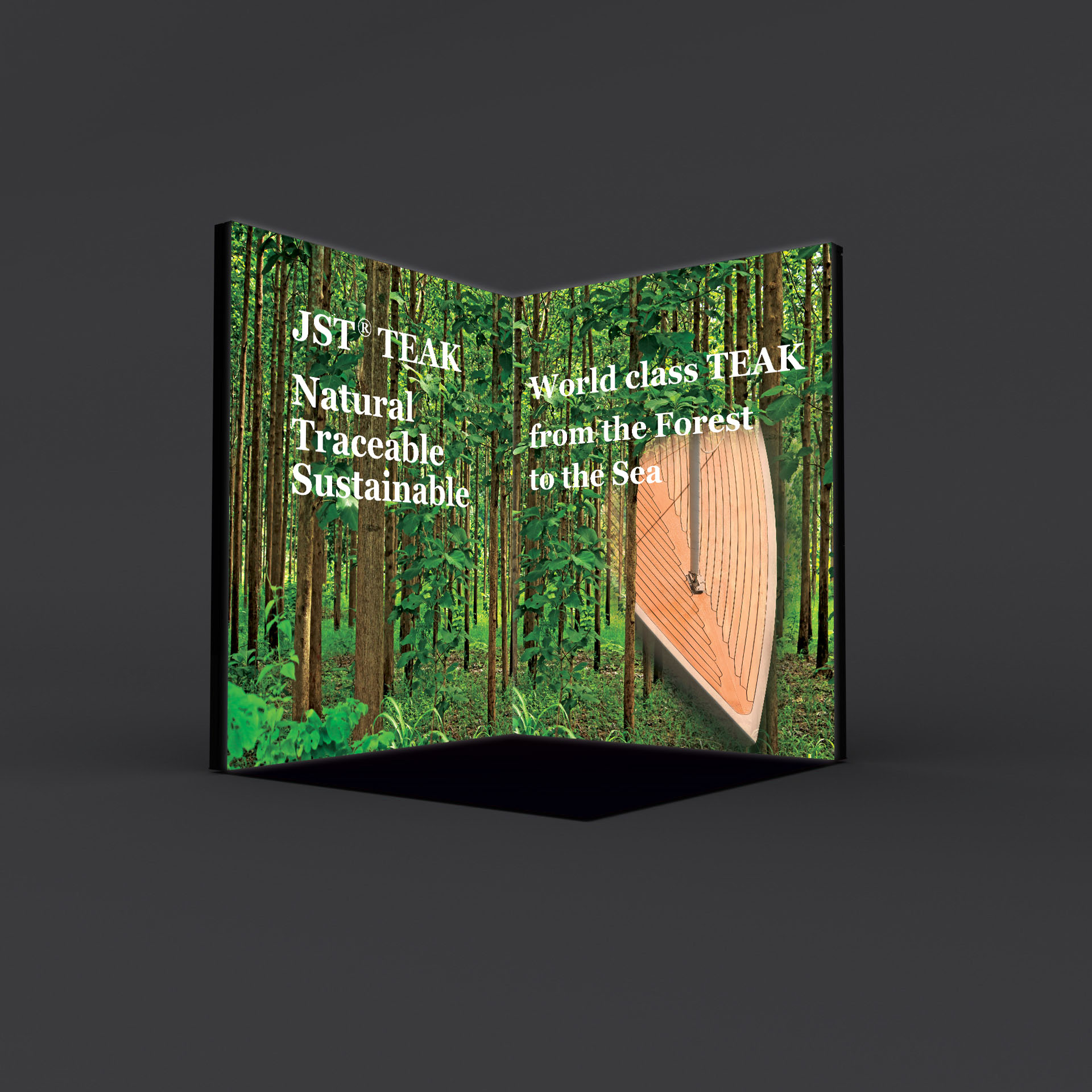 Stand “Angolare”, 2 lati aperti, retroilluminato modulare formato da n.2 pareti di formato cm 185×250. Formato totale a terra: cm 197x197x250h.