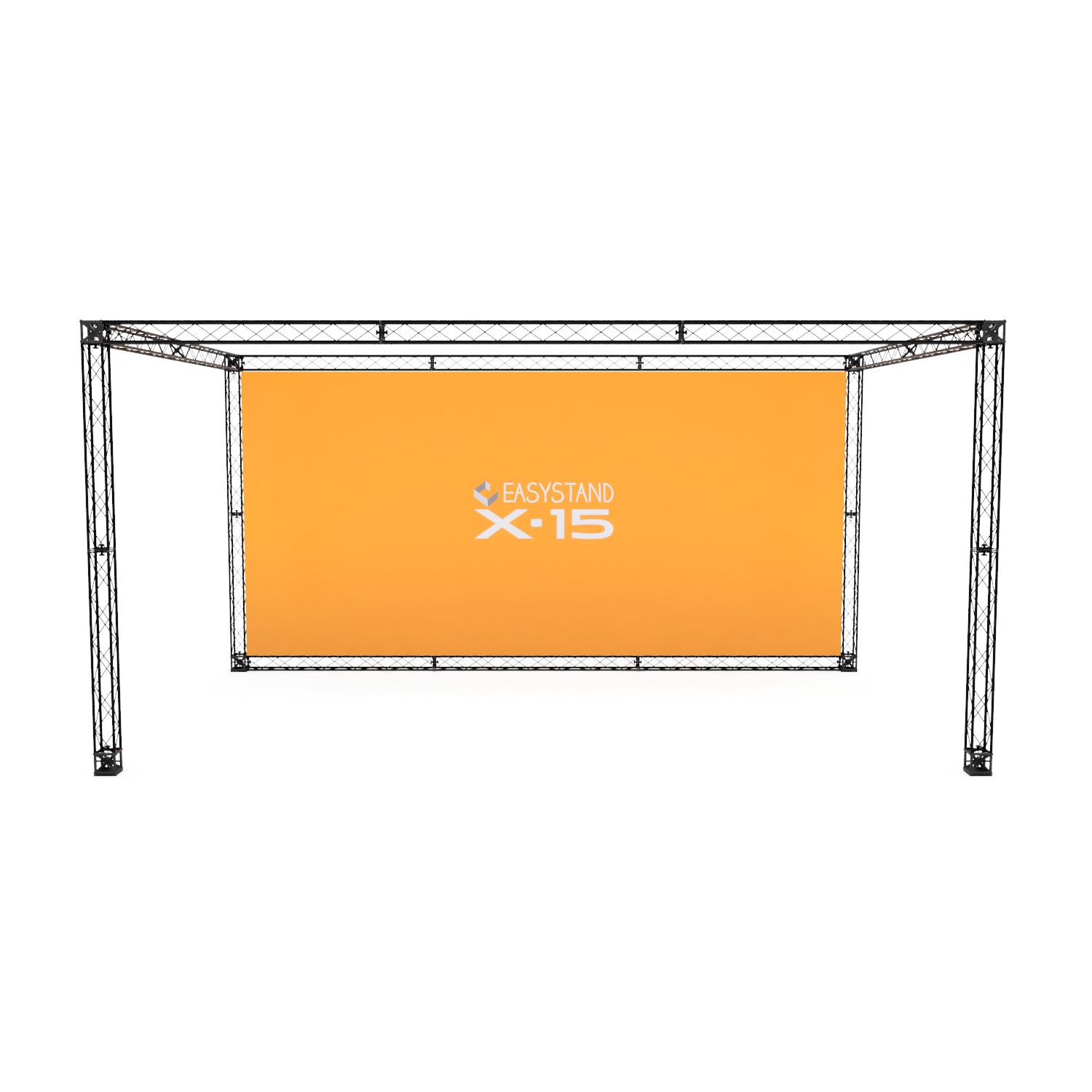 Stand “semiragno” di cm 600x300x300h (misura esterna). Aperto su 3 lati, chiuso solo sul lato di fondo. Ingresso utile cm 570.